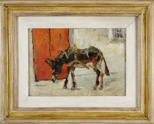 Olio su tela applicata a cartone. cm 30x40. Firmato in basso a destra. Al verso timbro de "Luigi Costa [..]