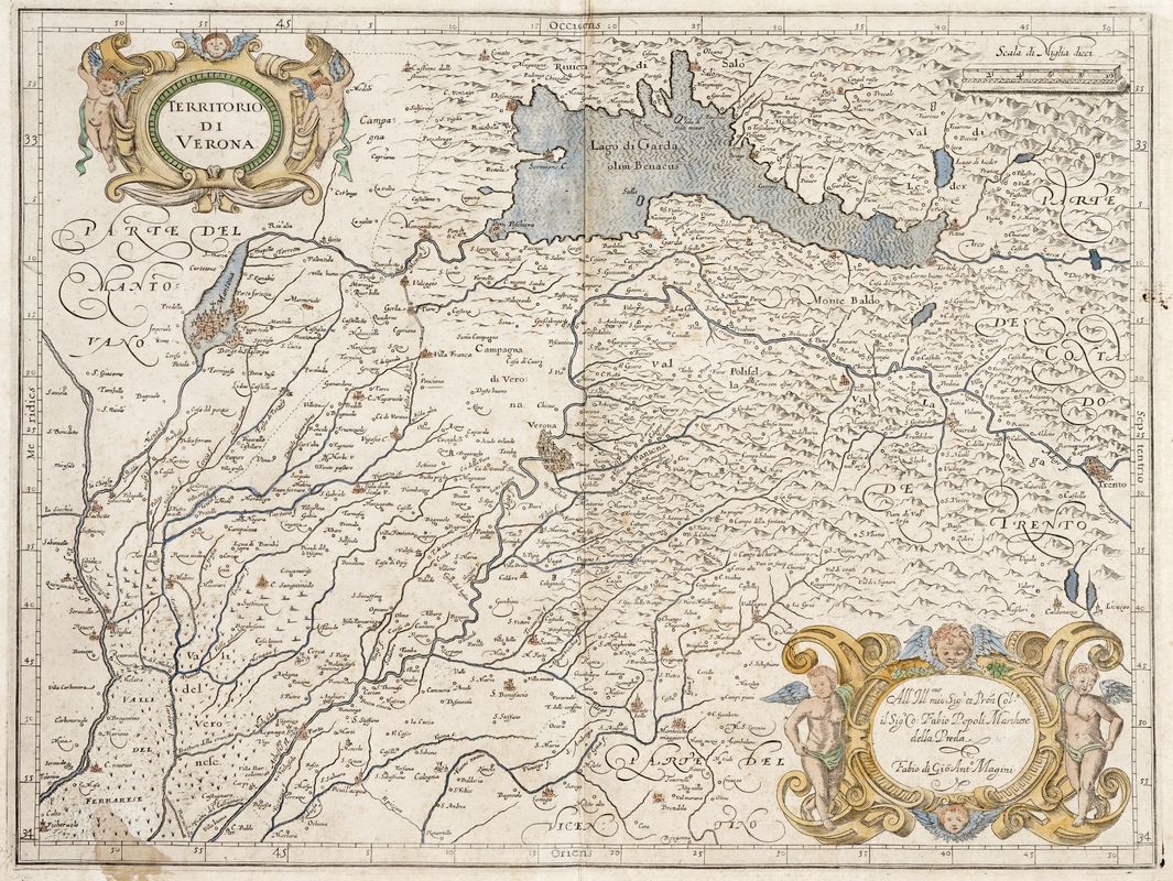Incisione in rame in coloritura. mm 460x345. Foglio:mm 473x355. Tratta da “Italia”, atlante pubblicato postumo da Fabio Magini, figlio del celebre astronomo e matematico padovano. II stato con la firma di Fabio Magini. Buona prova con alcuni tratti lievemente meno marcati, su carta vergellata pesante.SI AGGIUNGE: Adrien-Hubert Brué, (1786-1832). Mappe-monde sur la projection de Mercator. Ch. Picquet (Paris), 1842. Incisione in rame. Confini di Africa e Americhe in coloritura. mm 382x523. Foglio: mm 458x540.