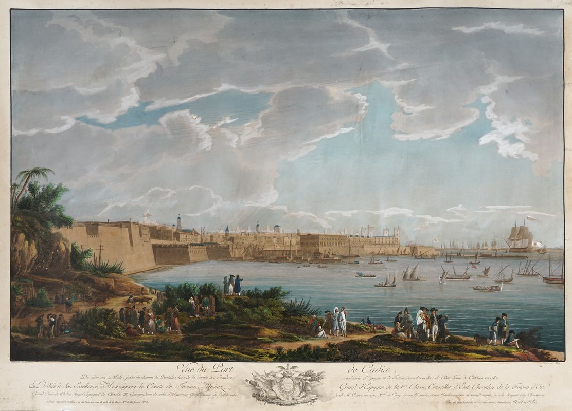 Acquaforte e bulino in coloritura. mm 560x773. Foglio: mm 579x773. Da soggetti di Alexandre Jean Noël (Brie Comte Robert, 1752 - Parigi, 1834). Tavola dalla serie Ports d'Espagne, ideata come continuazione di Ports of France di Vernet.