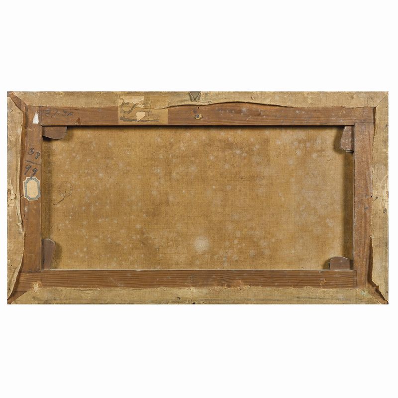 Infatti, il cartellino si riferisce all’opera del restauratore Isidoro Brun y Aguilar (Madrid, 1819-1898), pittore e collezionista di disegni (cfr. Oriane Lavit, La colección de dibujos franceses de Isidoro Brun (1819-1898) en el Museo del Prado, in “Boletín del Museo del Prado”, XXX, 53, 2017, pp. 98-112). Se dunque è accertabile un’origine spagnola per il dipinto, esso può essere avvicinato, come suggeriva del resto già Catton Rich (1938), al leggermente più grande (34 × 58 cm) Trionfo di Pulcinella scoperto nel 1932 da Méndez Casal a Tangeri nella collezione Maxwell Blake assieme a Il cavadenti e Il ciarlatano: i tre quadri furono trasferiti a Kansas City, per poi passare a Parigi in collezione Barbara Hutton, poi a Roma in collezione privata (Mariuz 1971, pp. 135-136). Fiocco, che studiò le opere (reputandole di Giambattista) in Marocco, asseriva di possedere “per tre di esse ancora i frammenti di tela in cui si legge il nome del Tiepolo al rovescio, provenienti dalle vecchie foderature, su cui la segnatura antica lasciò la sua impronta oltre che all’anno 1765” (Giuseppe Fiocco, Tiepolo in Spagna, in “Le Arti”, V, 1942, p. 9): una data che andrebbe rapportata pure al verosimile pendant del Trionfo, cioè la tela ex Broglio raffigurante la cottura di pietanze, presumibilmente gnocchi, e la conseguente digestione connesse con la grottesca apoteosi di Pulcinella.