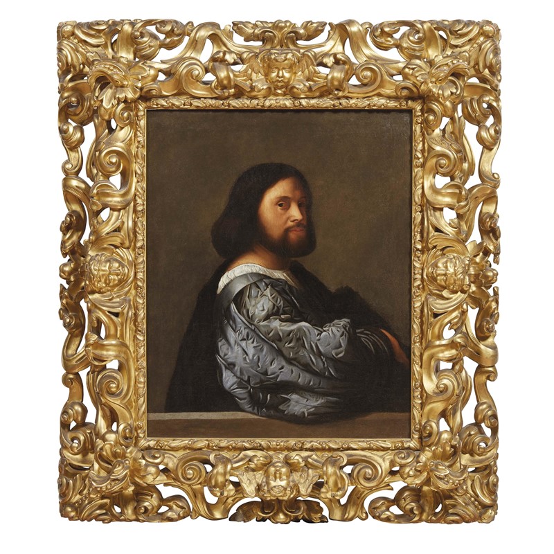 Fino al 1824 il dipinto qui presentato era la versione più famosa del ritratto noto come Il Gentiluomo in blu di Tiziano, detto anche l’Ariosto: solo in quell’anno il nobile inglese Lord Darnely dava infatti in prestito alla British Institution l’esemplare di sua proprietà, acquistato nel 1904 dalla National Gallery di Londra dove tutt’oggi si trova. Quest’ultimo presenta la sigla “T. V.”, risultato di una pulitura effettuata nel 1949 che ha cancellato la firma parzialmente apocrifa “TITIANVS TV”.
