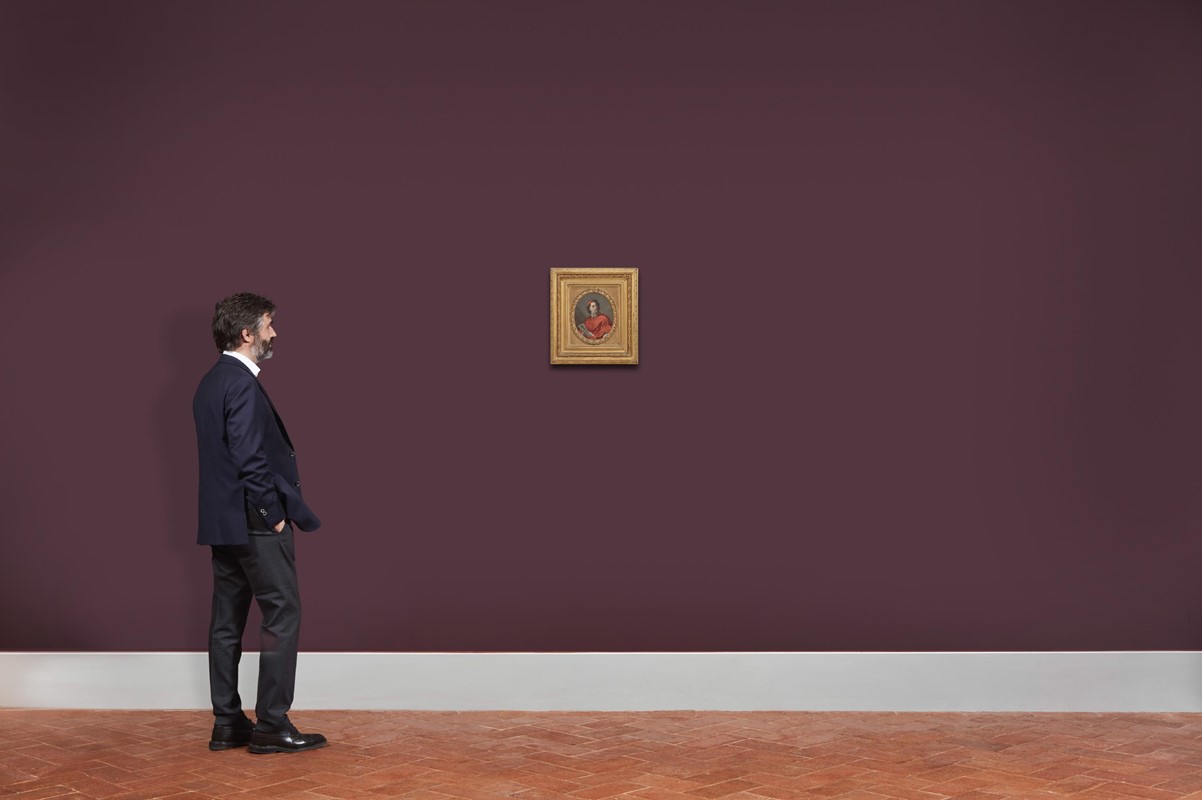 Colto nell’attimo di volgere lo sguardo dalla lettera che ha in mano, quasi inseguendo un pensiero improvviso o rispondendo al saluto di un interlocutore sopraggiunto a sua insaputa, il nipote del papa regnante è qui davvero giovanissimo, appena dopo la nomina a cardinale, avvenuta il 23 dicembre 1711 e perfezionata il 2 marzo 1712 con l’attribuzione del titolo di S. Eustachio.