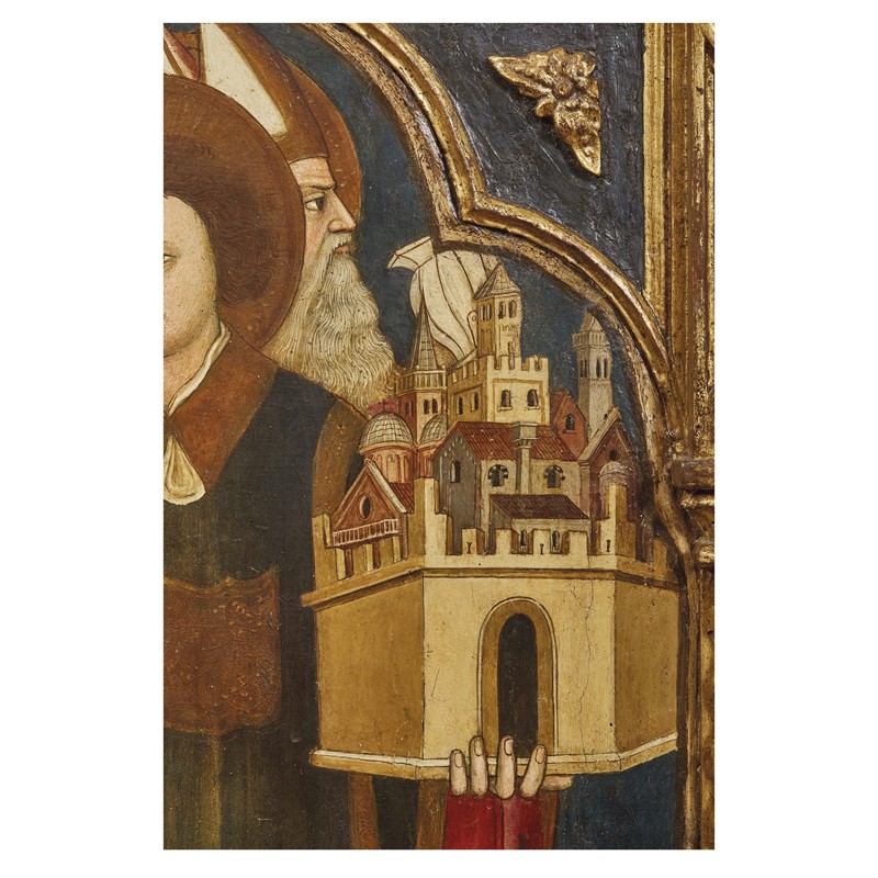 Esposta alla Prima Mostra d’Arte Antica delle Raccolte Private Veneziane con un’attribuzione a Nicoletto Semitecolo (vedi bibliografia), che emendava un riferimento tradizionale a Nicolò di Pietro, la tavola raffigurante i santi Daniele e Prosdocimo mostra una vicinanza tanto stretta al linguaggio di Altichiero, da rammentare subito le opere di maestri di solida formazione altichieresca, come Antonio di Pietro e Jacopo di Silvestro da Verona, attivi a Padova tra Tre e Quattrocento (su Nicolò di Pietro, cfr. A. De Marchi, Per un riesame della pittura tardogotica a Venezia: Nicolò del Paradiso e il suo contesto adriatico, in “Bollettino d’Arte”, LXXII, 1987, 44-45, pp. 25-66; su Jacopo di Silvestro e su Antonio di Pietro si vedano: M.L. Massini, Jacopo da Verona, ad vocem, in Dizionario biografico degli italiani, vol. 62, Roma 2004; F. Piccoli, Jacopo di Silvestro (Jacopo da Verona), ad vocem, in Altichiero e la pittura a Verona nella tarda età scaligera, a cura di F. Piccoli, Verona 2010, p. 170; A. De Marchi, Il nipote di Altichiero, in De lapidibus sententiae. Scritti di Storia dell’arte per Giovanni Lorenzoni, a cura di T. Franco e G. Valenzano, Padova 2002, pp. 99-110).