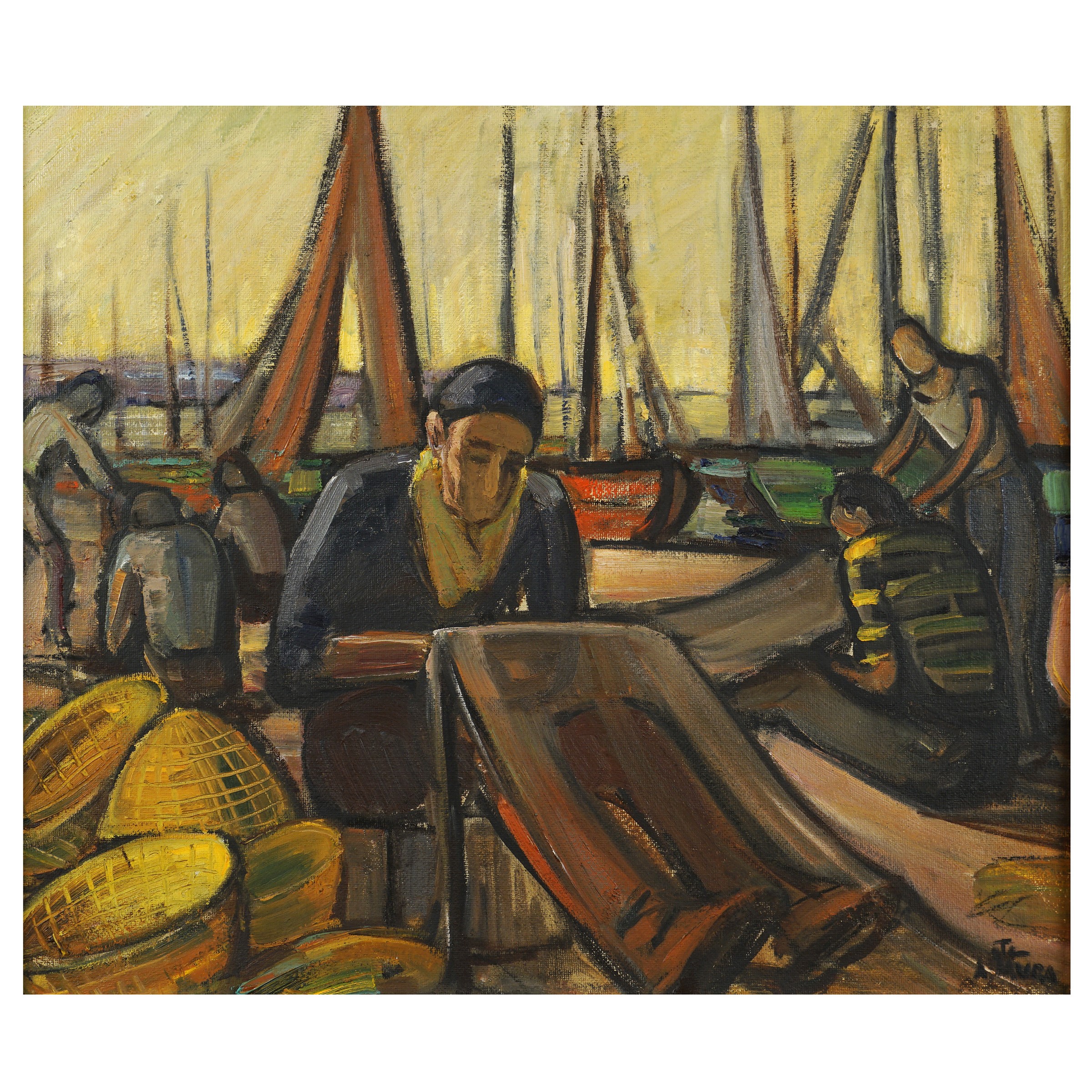 Aritzo 1902 – Firenze 1972 Pescatori, acrilico su tela, firmato in basso a destra