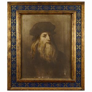 cornice 106x91 cm. XX Sec. all'interno stampa raffigurante Leonardo Da Vinci