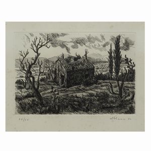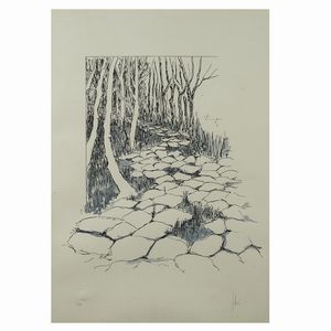 70x50 cm. XX Sec. Sentiero, litografia es. 3/100, firmata in basso a destra