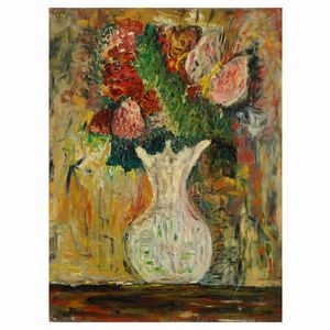 40x30 cm. XX Sec. Natura morta con vaso di fiori, olio su tela