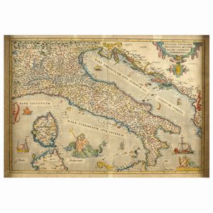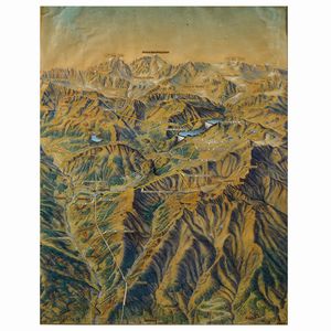 68x53 cm. XX Sec. Cartina geografica alpina, tecnica mista e collage su carta