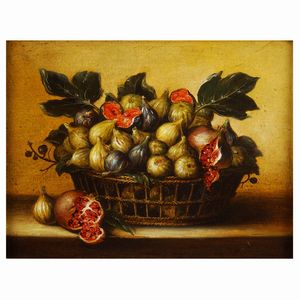 30x40 cm. XX Sec. Natura morta con fichi e melograni, olio su tela