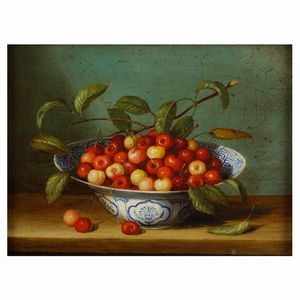 30x40 cm. XX Sec. Natura morta con ciliegie, olio su tela