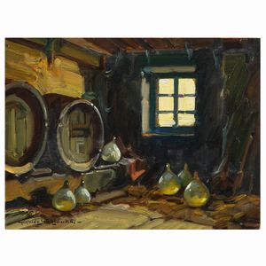 15x20 cm. Prussia 1921 - Napoli 2003 Cantina, olio su tavola, firmato in basso a sinistra