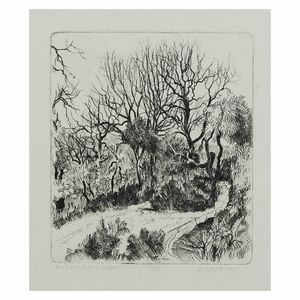 45x35 cm. Sassari 1931 Sentiero fra gli alberi, litografia es. 15/25, firmata in basso a destra