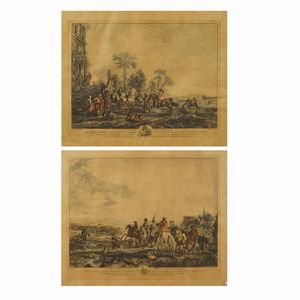 75x55 cm. Anversa 1683 - Parigi 1733 Scene di caccia, due litografie a colori