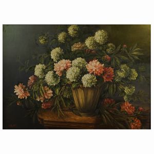 100x140 cm. Oleggio 1884 – Varese 1954 Natura morta con vaso di fiori, olio su tela, firmato in basso a sinis [..]