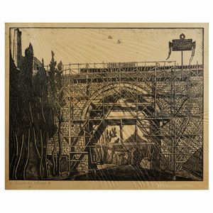 52x65 cm. Osimo 1888 - Ancona, 1962 Il ponte romano di Ascoli Piceno, xilografia