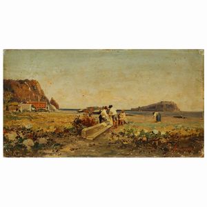 19x35 cm. Italia, XIX-XX Sec. Coroglio - Napoli, olio su tavola, firmato in basso a destra