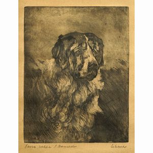 29,5x23 cm. Italia, XX Sec. Cane San Bernardo, disegno a china su carta