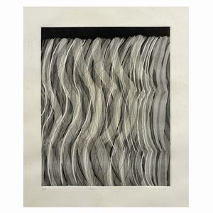 41x32 cm. Italia, XX Sec. Onde grigie, 1966, litografia es. 17/30, firmata e datata in basso a destra