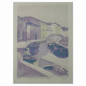 70x50 cm. Lido di Venezia 1921 Riflessi a Burano, l'isola dei Pittori, litografia a colori, es. 77/100, firmata [..]
