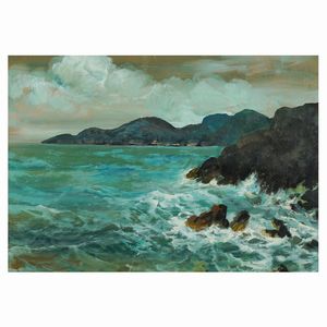 35x49 cm. Luzzara 1893 - La Spezia 1976 Marina, olio su cartone