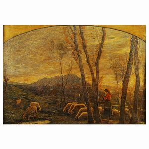68x98 cm. Milano 1888 - 1973 Pastorella con gregge, olio su tela, firmato in basso a destra