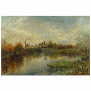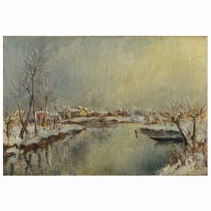 80x120 cm. Milano 1901 – Lugano 1994 Il Lambro, olio su tela, firmato in basso a destra