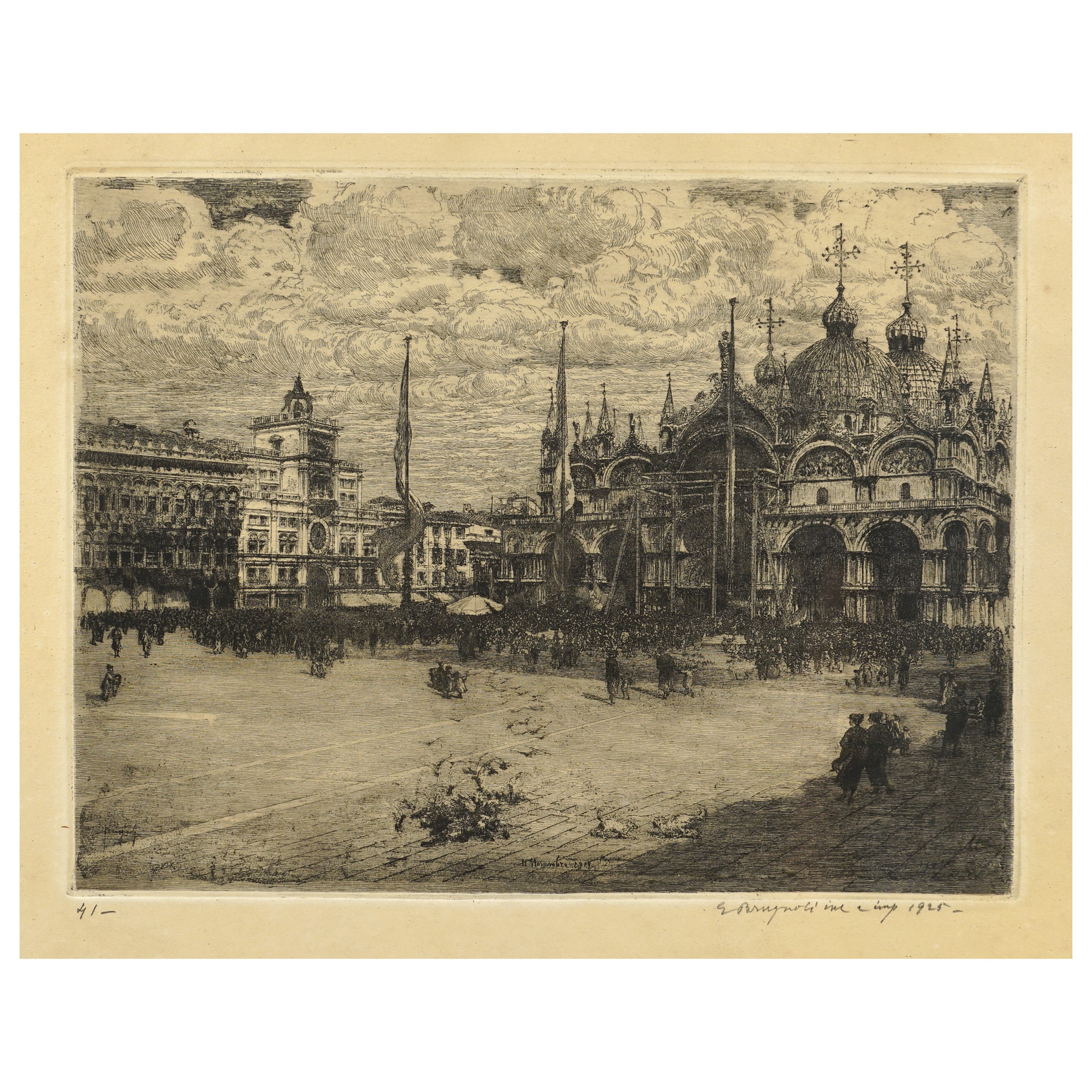Bologna 1859 - Venezia 1944 Piazza San Marco, 1925, acquaforte, firmata e datata in basso a destra