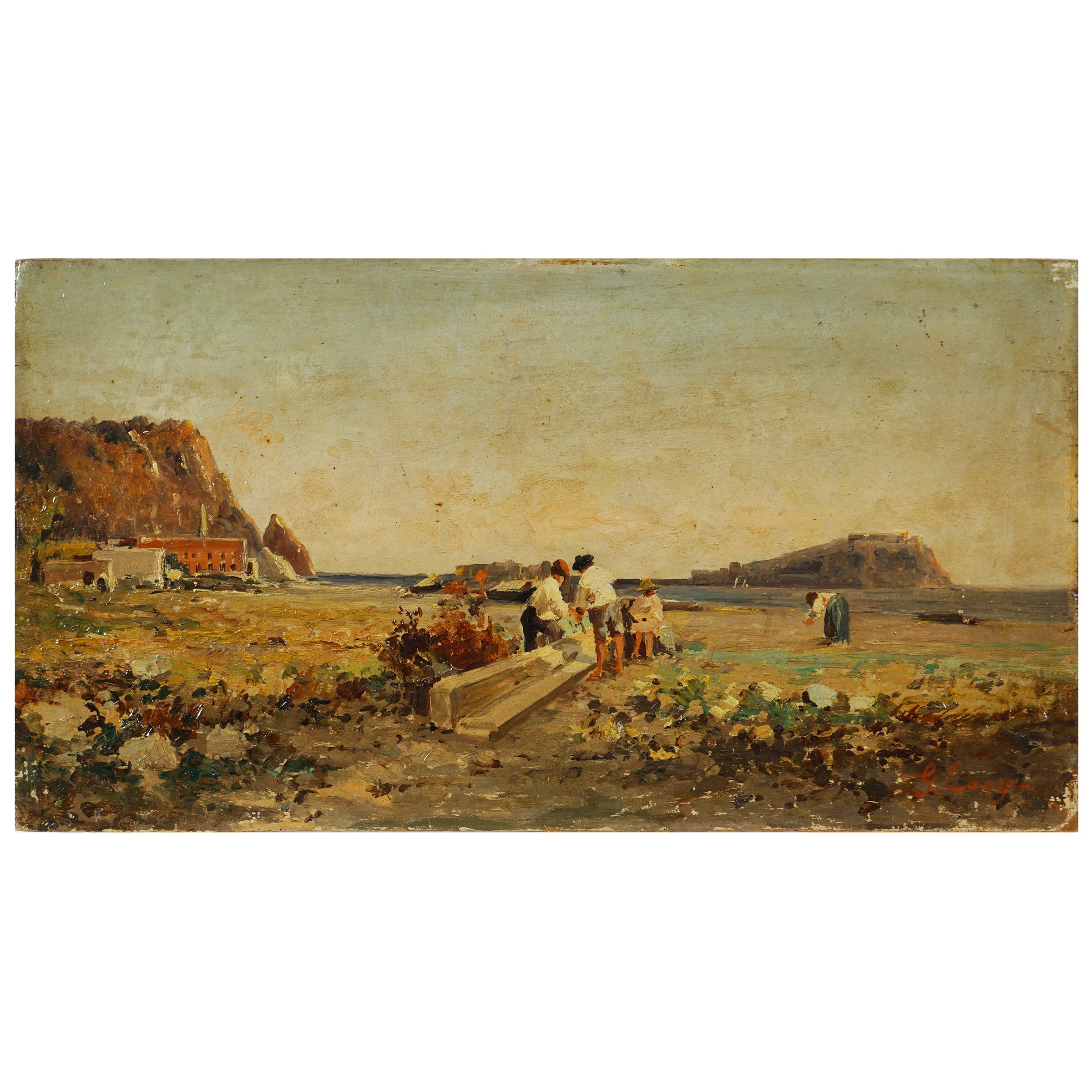 Italia, XIX-XX Sec. Coroglio - Napoli, olio su tavola, firmato in basso a destra