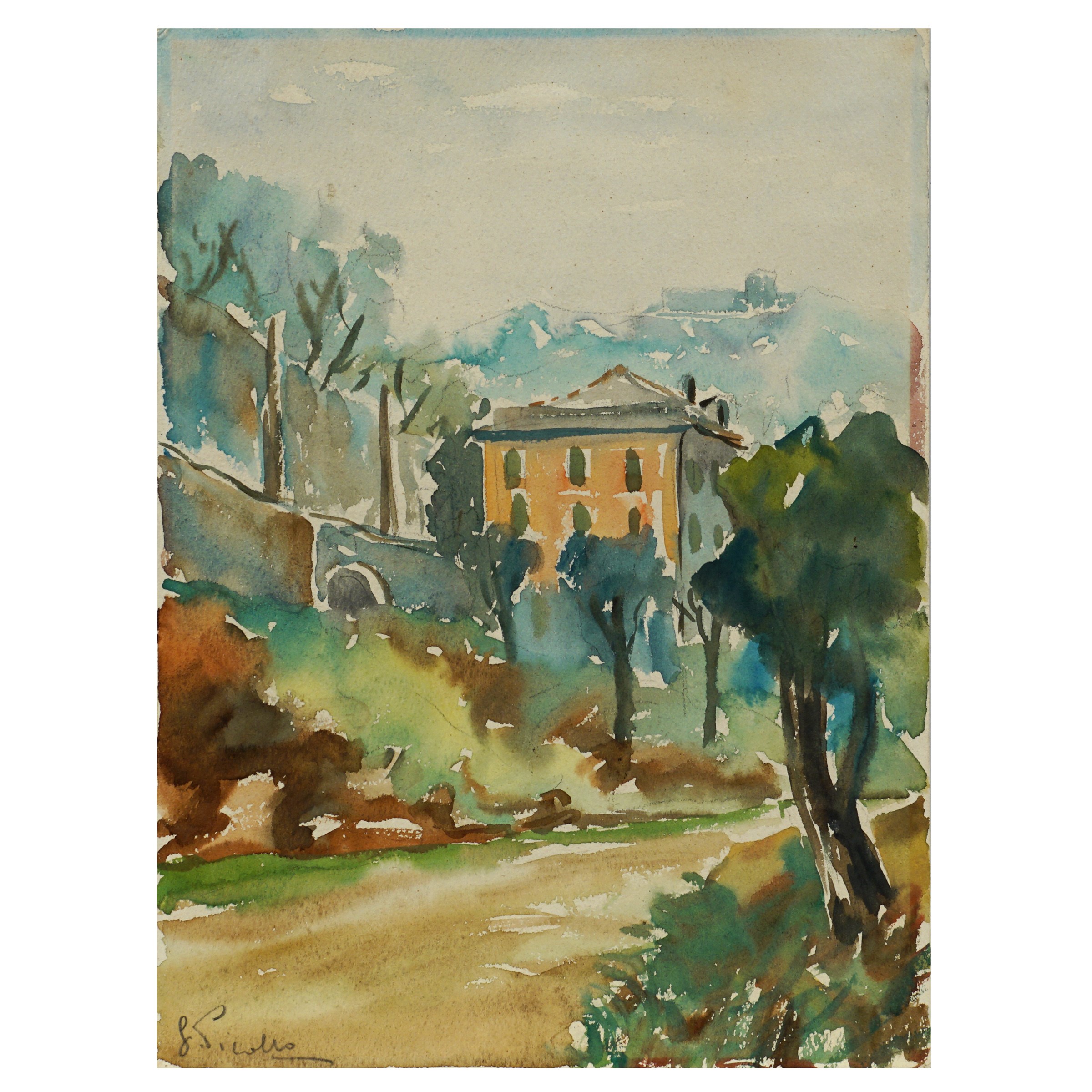 Genova 1905 – Sestri Ponente 1983 Paesaggio con casa, acquarello su carta, firmato in basso a sinistra