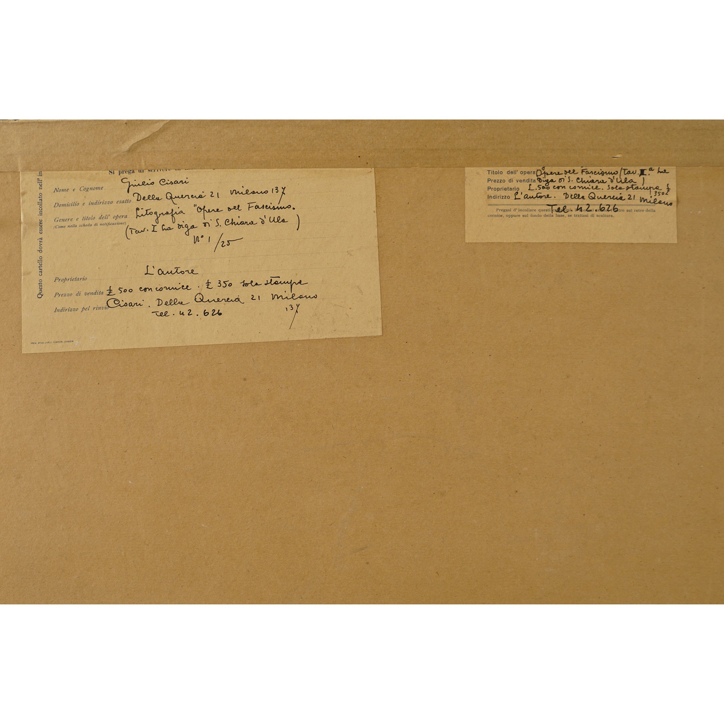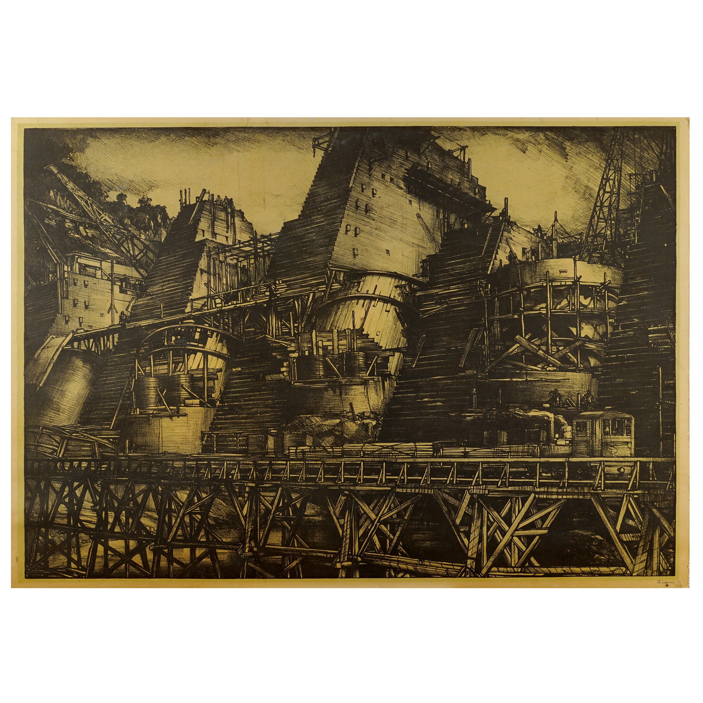 Como 1892- Milano 1979 Opere del Fascismo (tav. I La Diga di Santa Chiara d'Ula), litografia es. 1/25, firmata in basso a destra