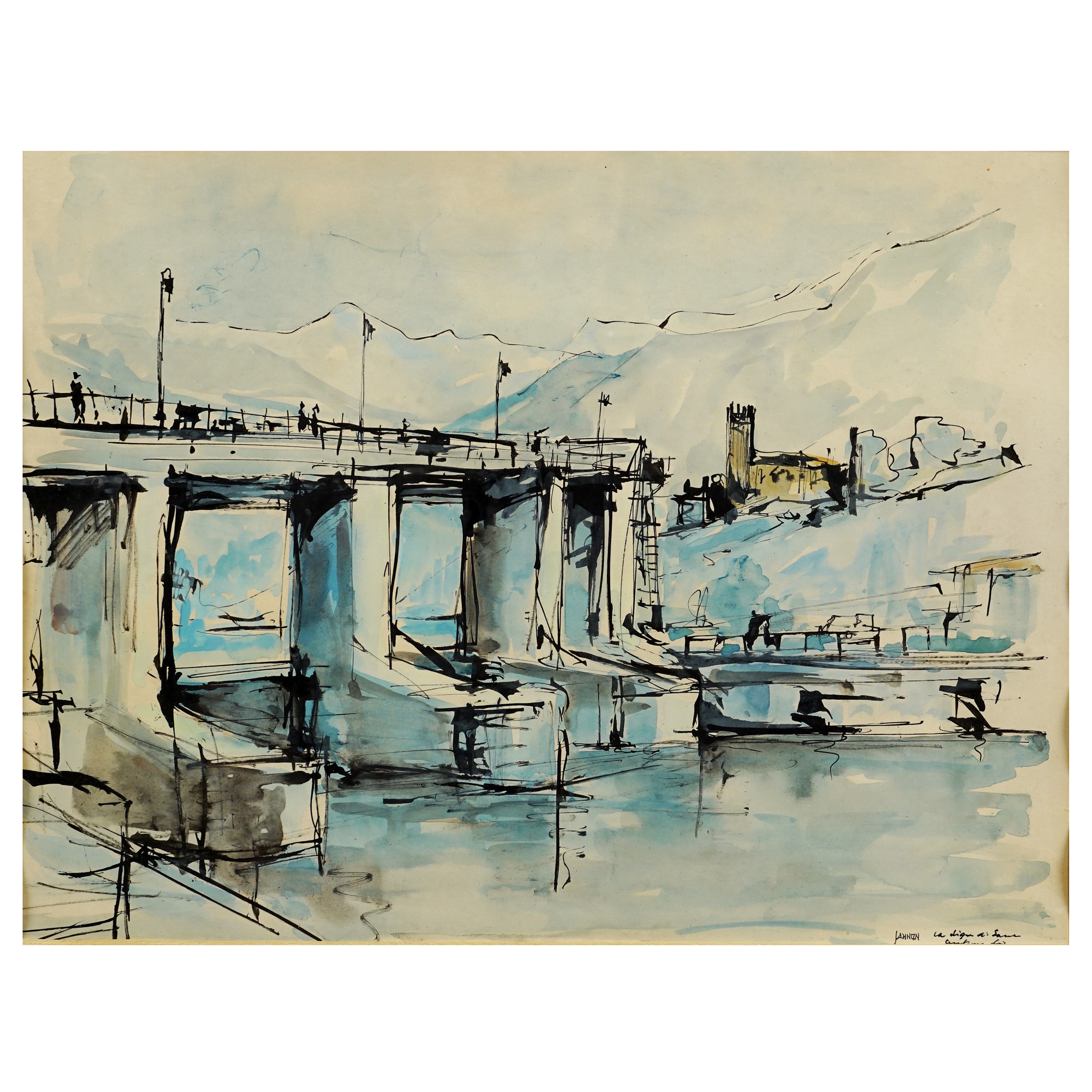 Piemonte 1917 - 1986 Sbarramento di Sarre- Aosta, acquarello su carta, firmato in basso a destra