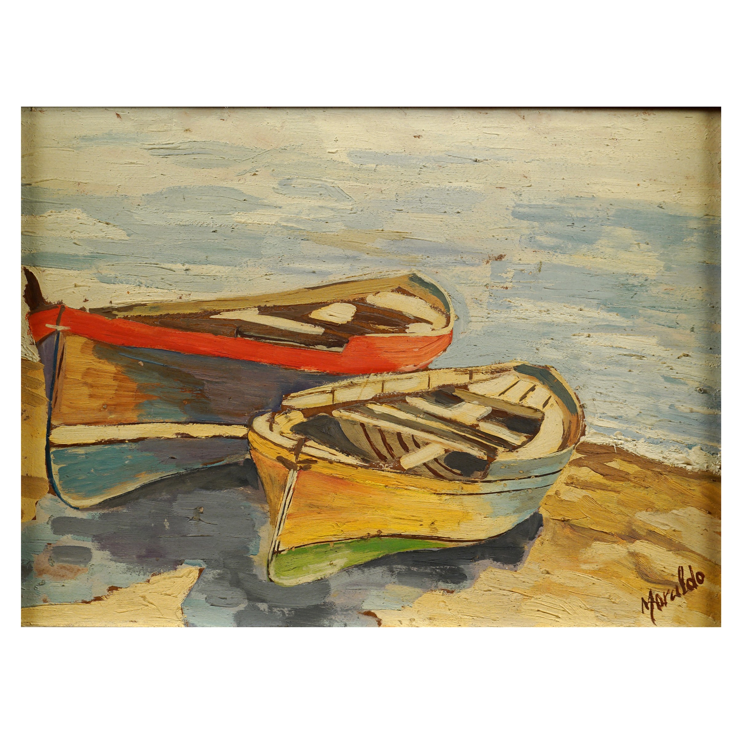 Italia XX Sec. Barche, olio su cartoncino, firmato in basso a destra