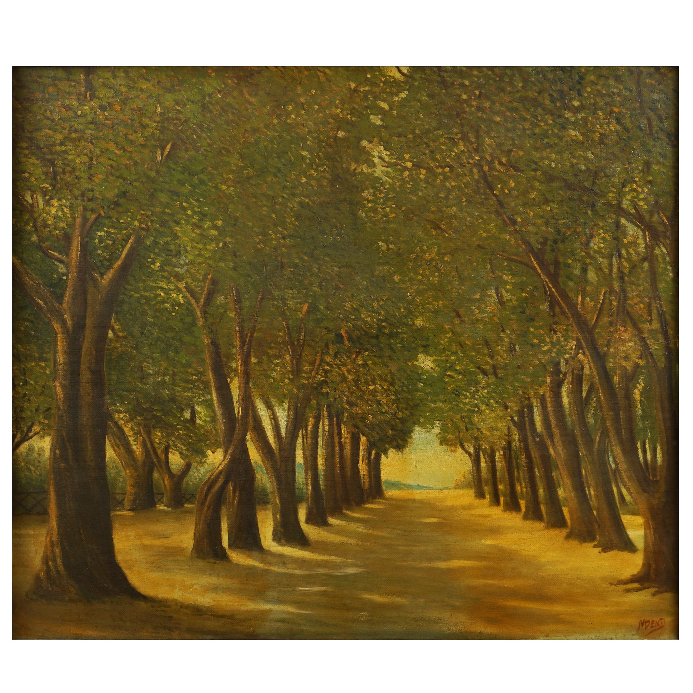 Italia XX Sec. Viale alberato, olio su tela, firmato in basso a destra