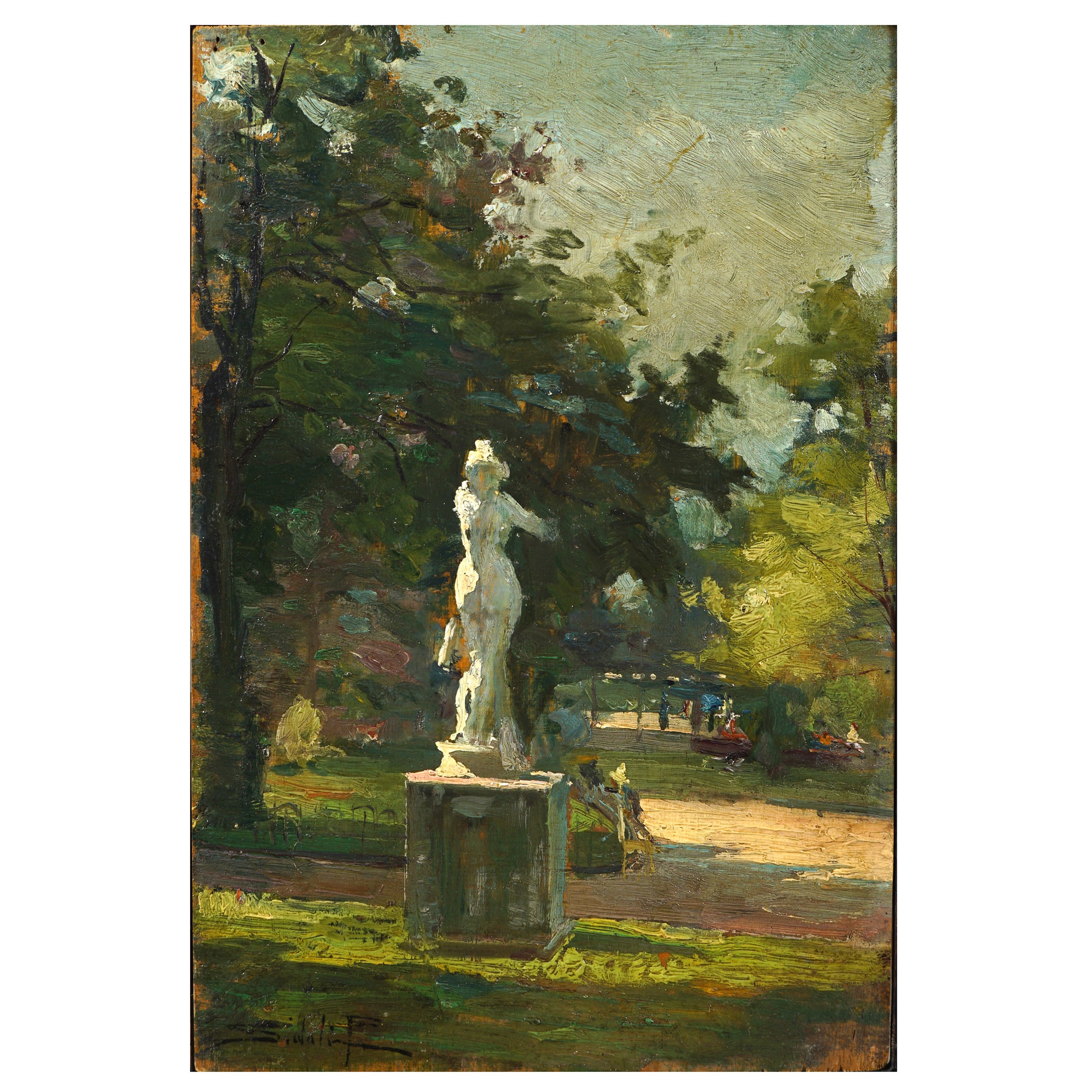 Piacenza 1868-1963 Giardini del Lussemburgo- Parigi, olio su tavoletta, firmato in basso a sinistra