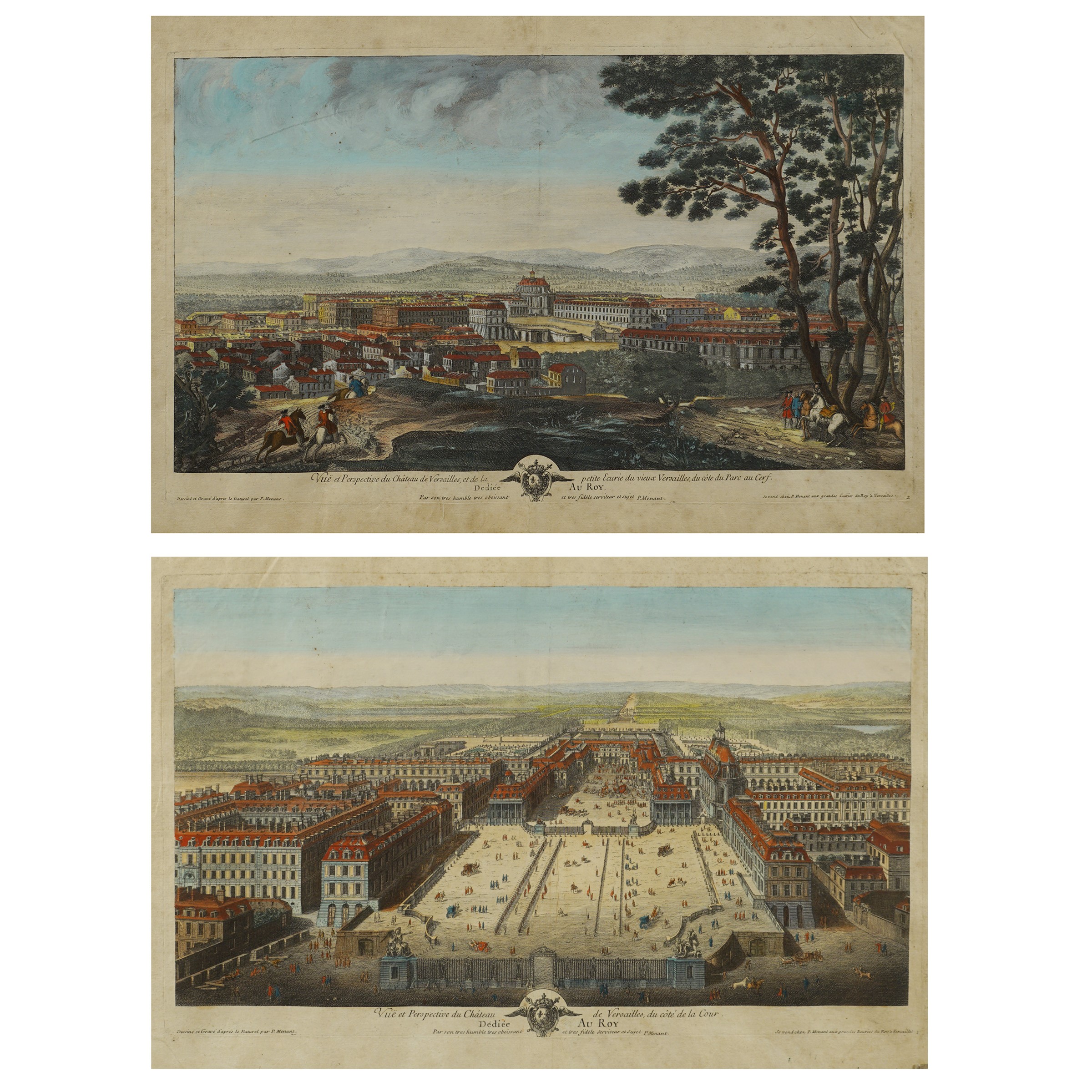XVIII Sec. Vedute della Reggia di Versailles, due incisioni colorate a mano