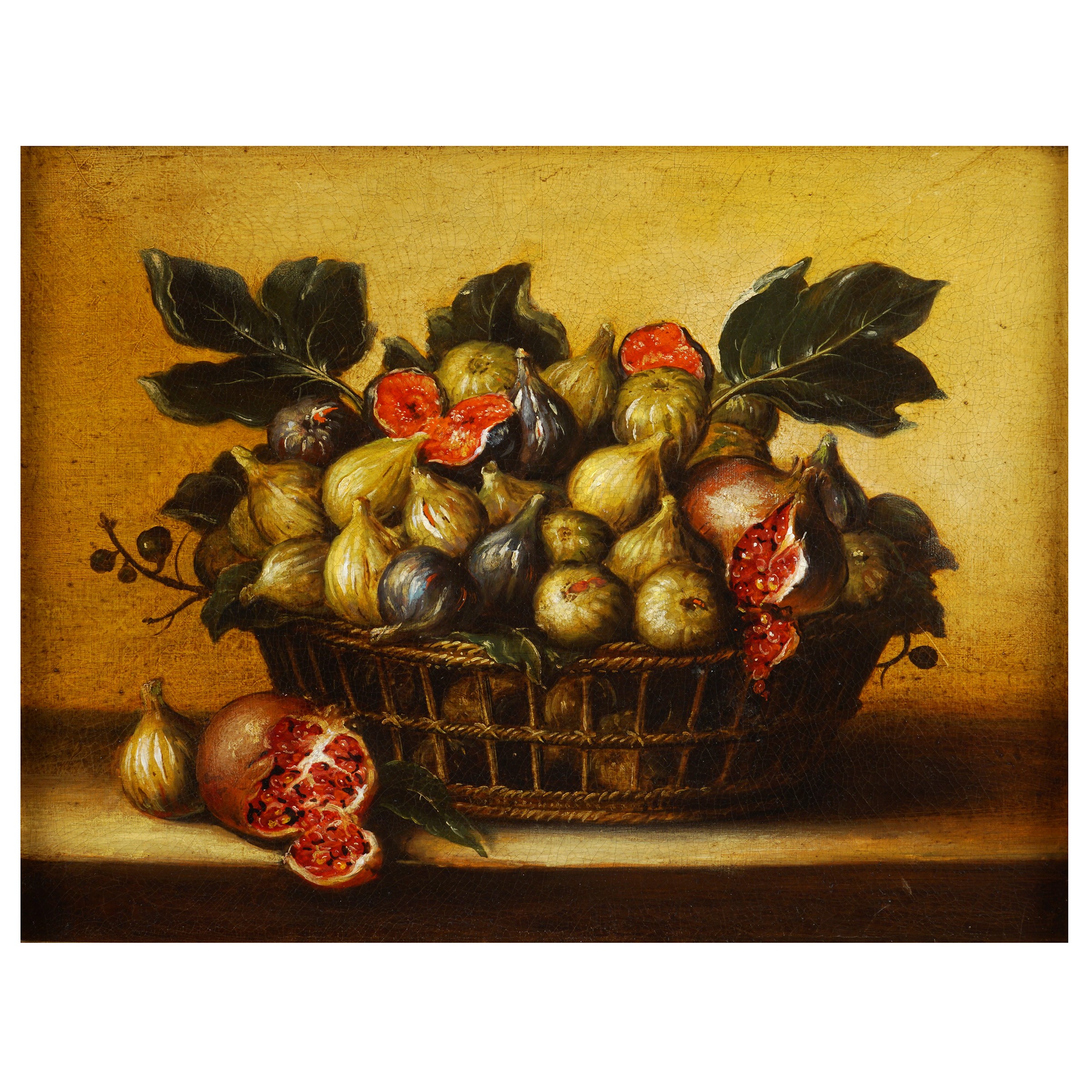 XX Sec. Natura morta con fichi e melograni, olio su tela