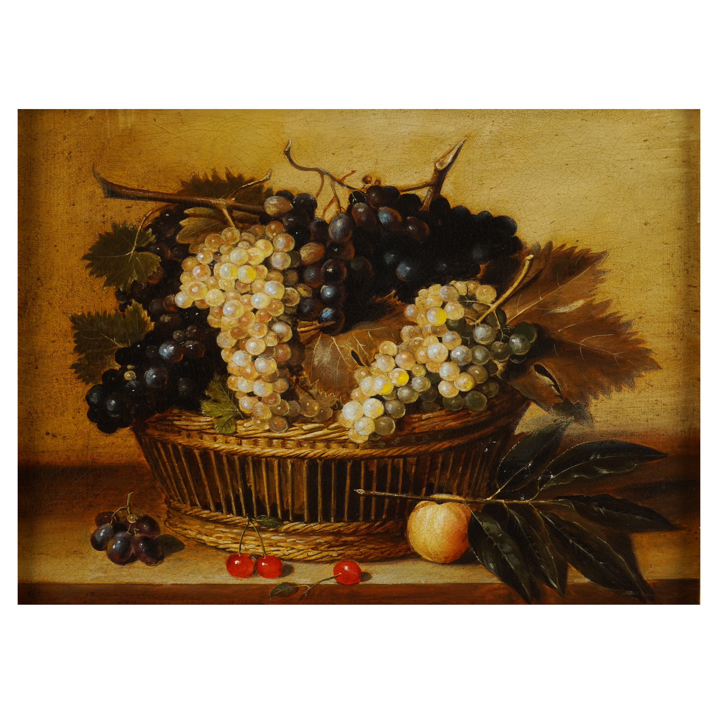 XX Sec. Natura morta con uva e pesche, olio su tela