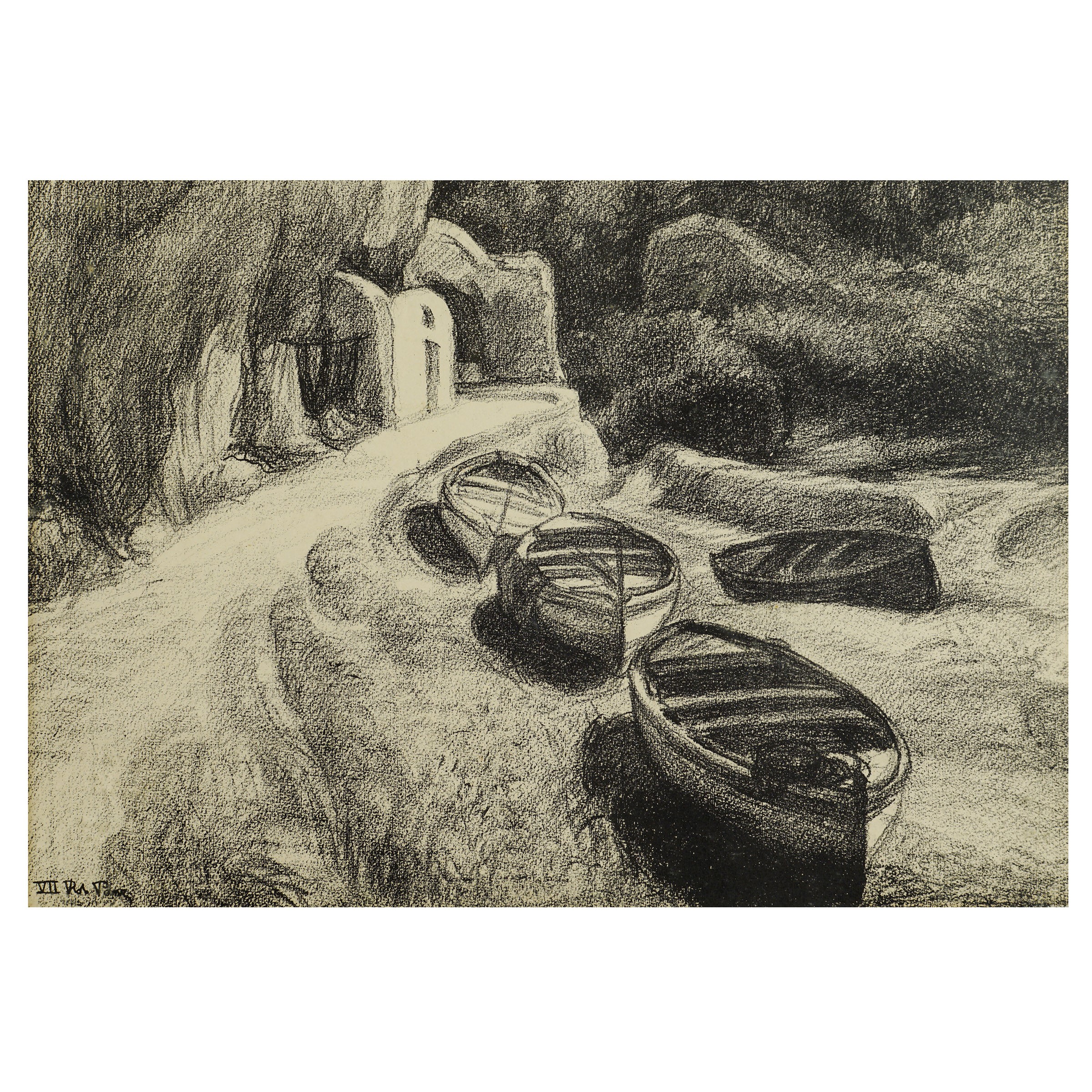 1897 – Sorrento 1987 Spiaggia con barche, carboncino su carta, firmato