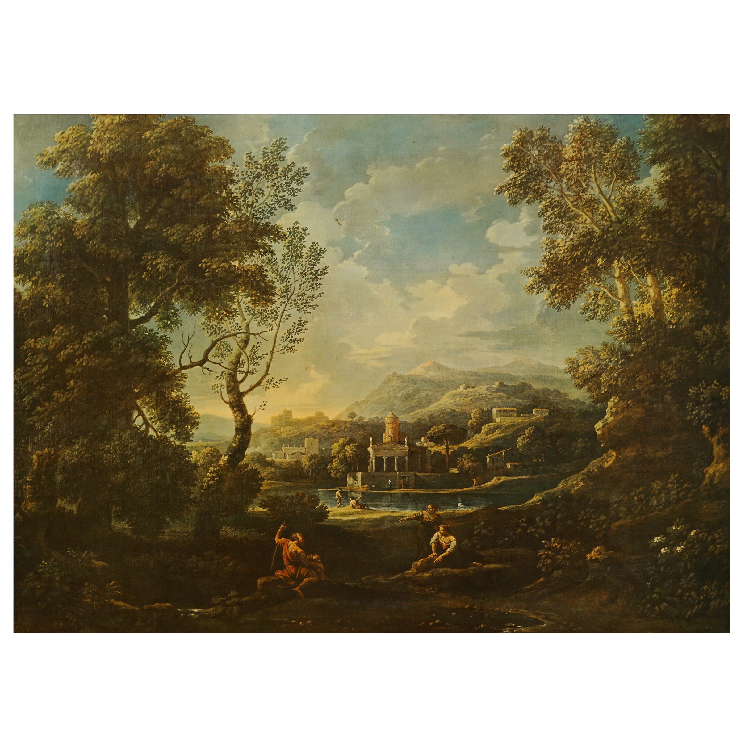 Italia XX sec. Paesaggio con lago, riproduzione del dipinto di Jan Frans van Bloemen, conservato presso la Villa D'Este-Tivoli