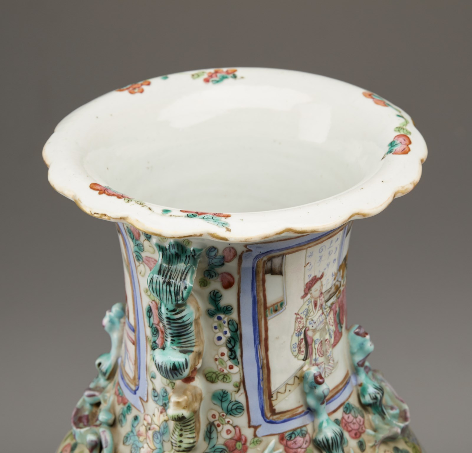 Vasi a balaustro con orlo frangiato e manici a qilong.
