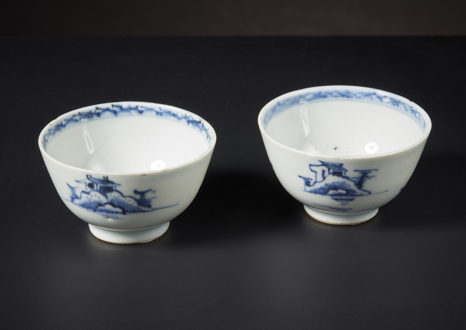 Coppia di tazze in ceramica bianco/blu Cina, dinastia Qing, XVIII secolo
