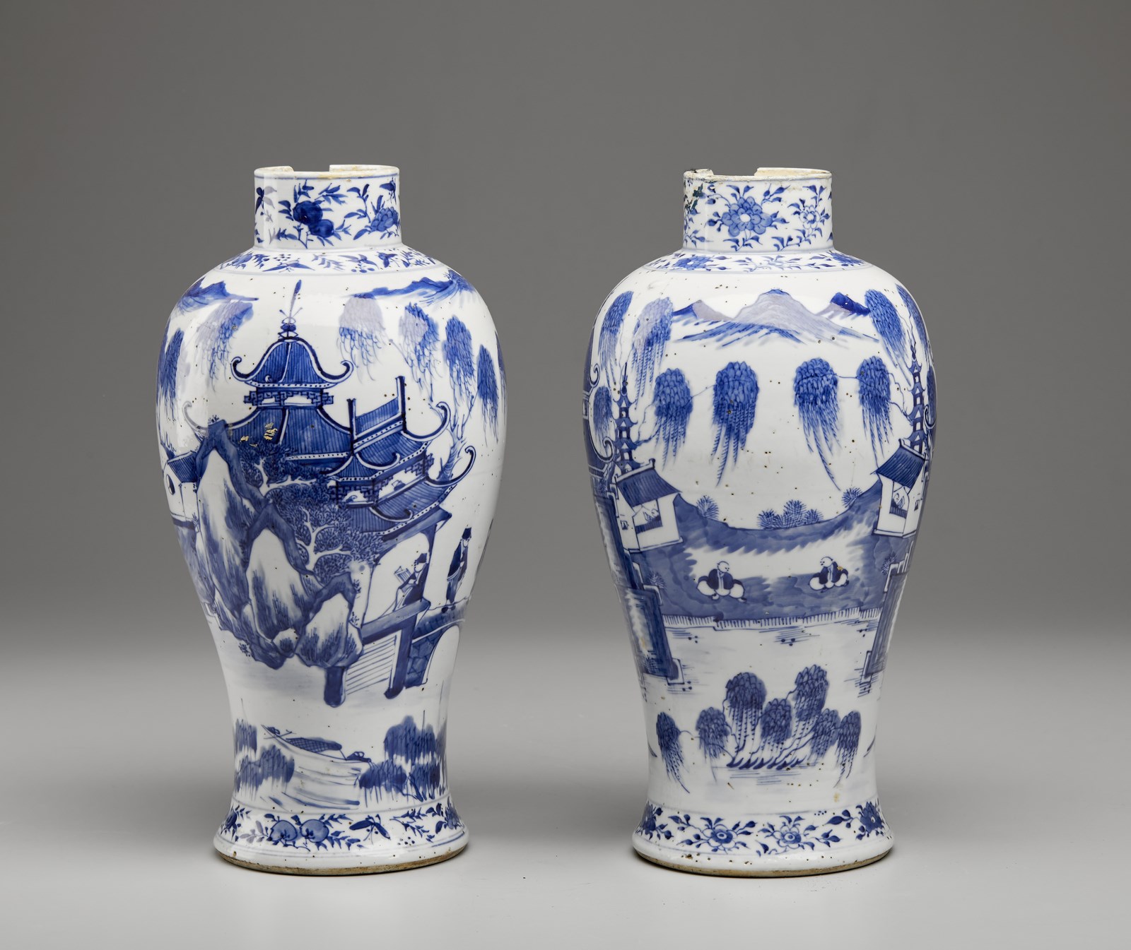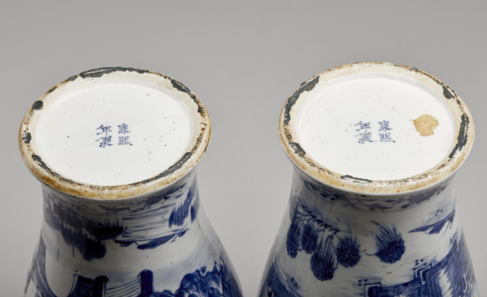 Coppia di vasi a balaustro in porcellana bianca e blu Cina, dinastia Qing, periodo [..]