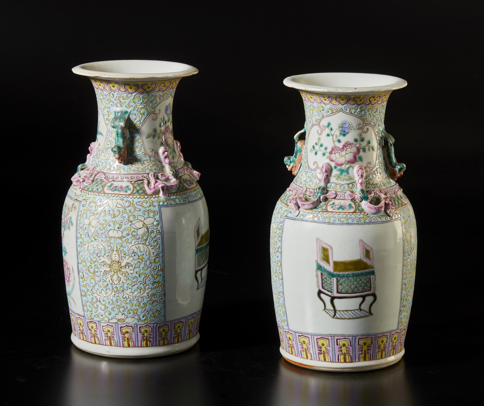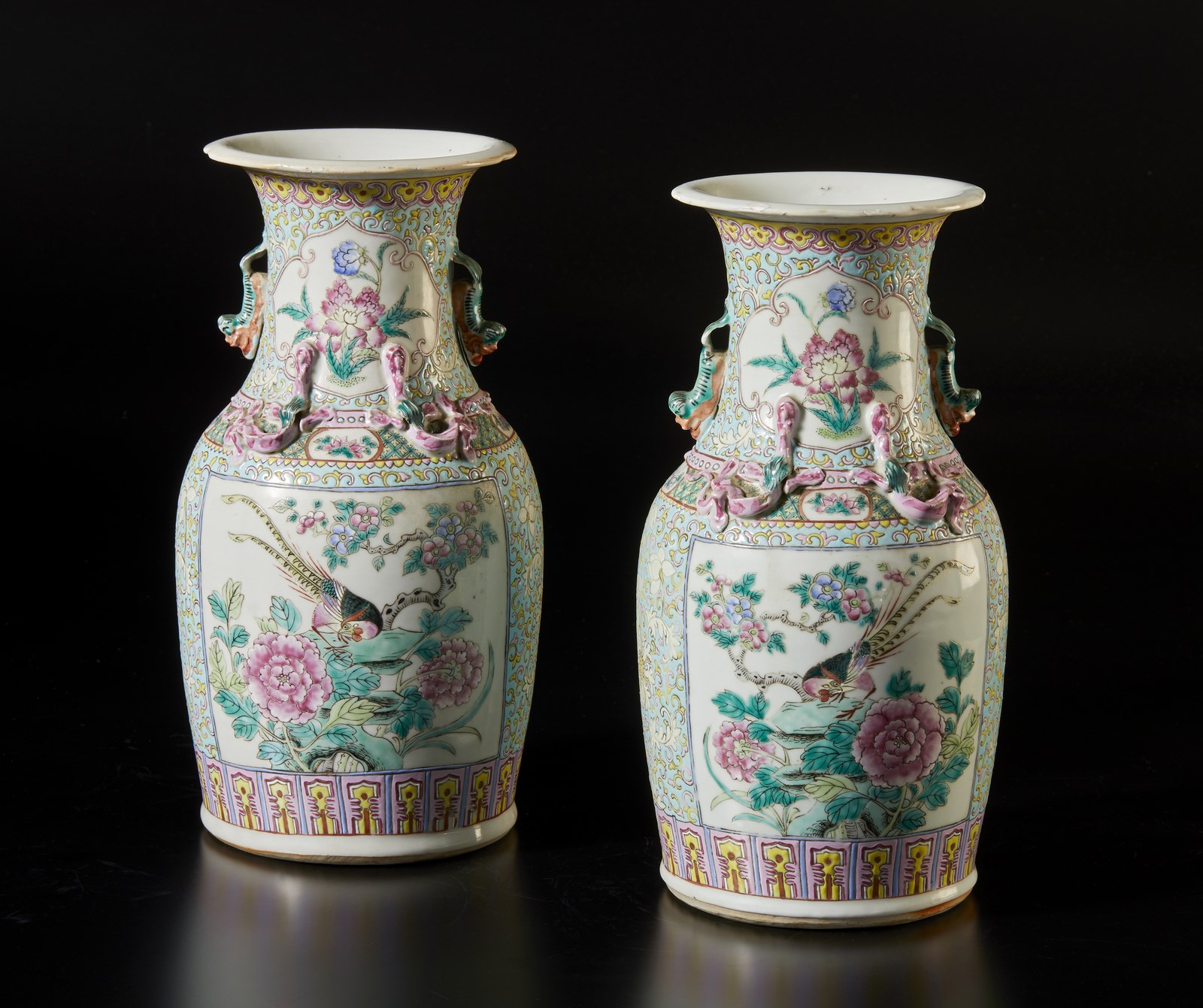 Coppia di vasi in porcellana famiglia rosa Cina, XX secolo