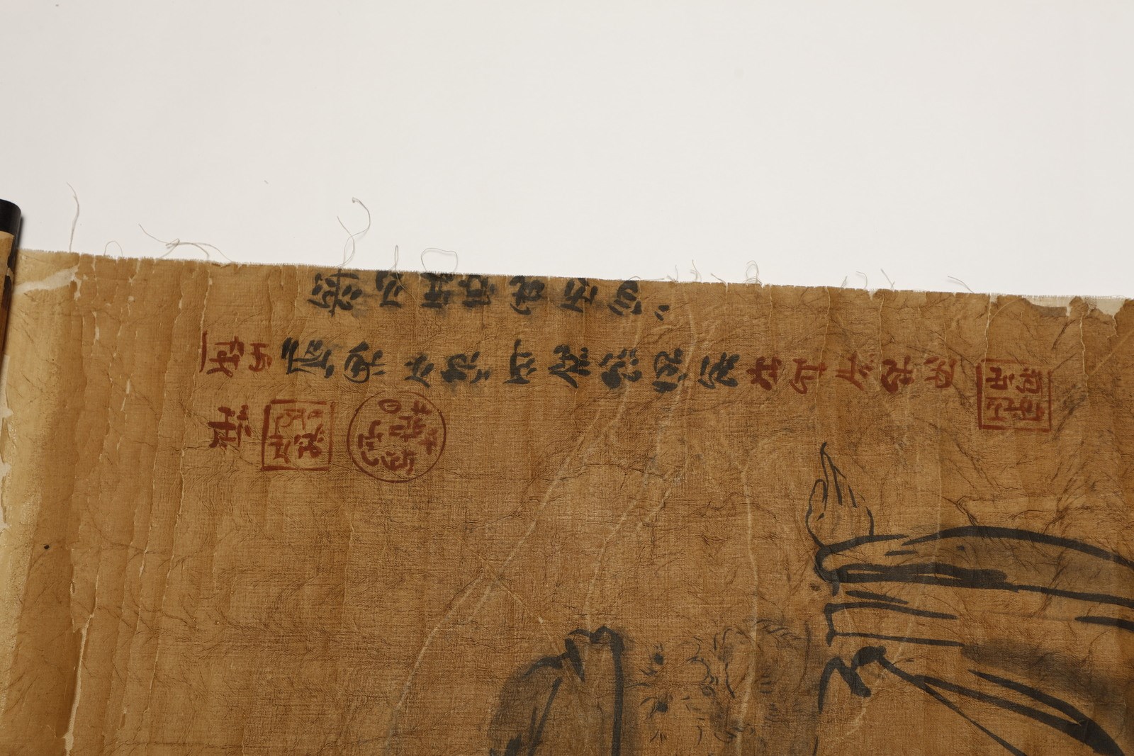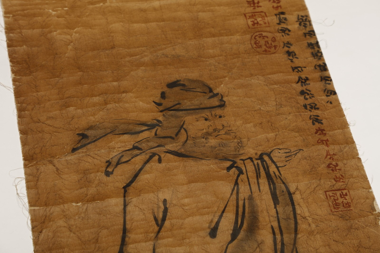 Rotolo verticale con ritratto di anziano personaggio in piedi. La composizione presenta iscrizioni esigilli