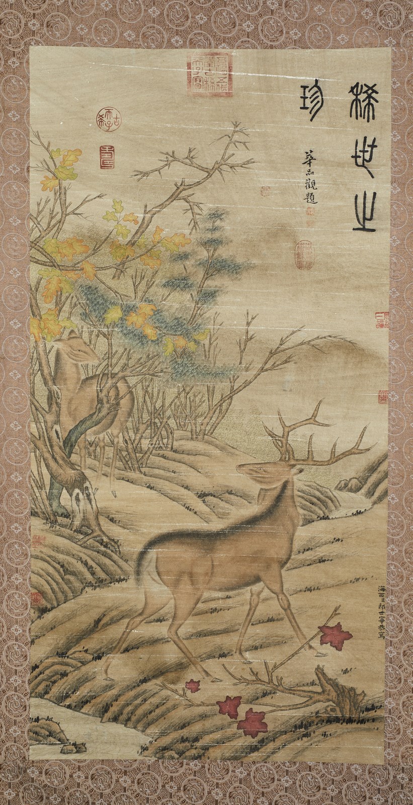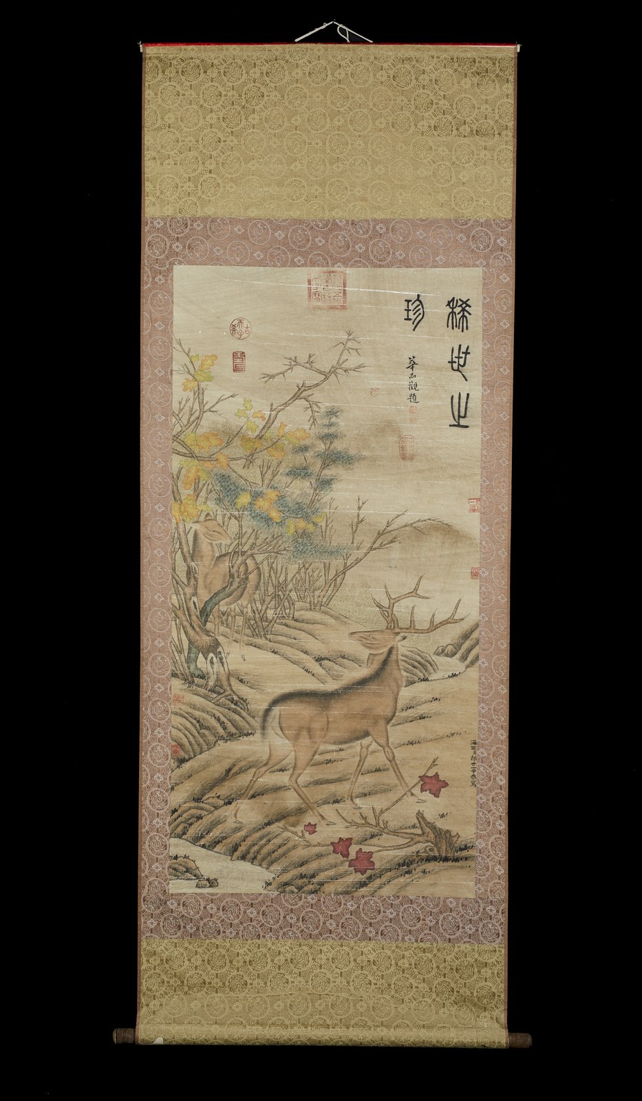 Dipinto su seta raffigurante un cervo Cina, XX secolo
