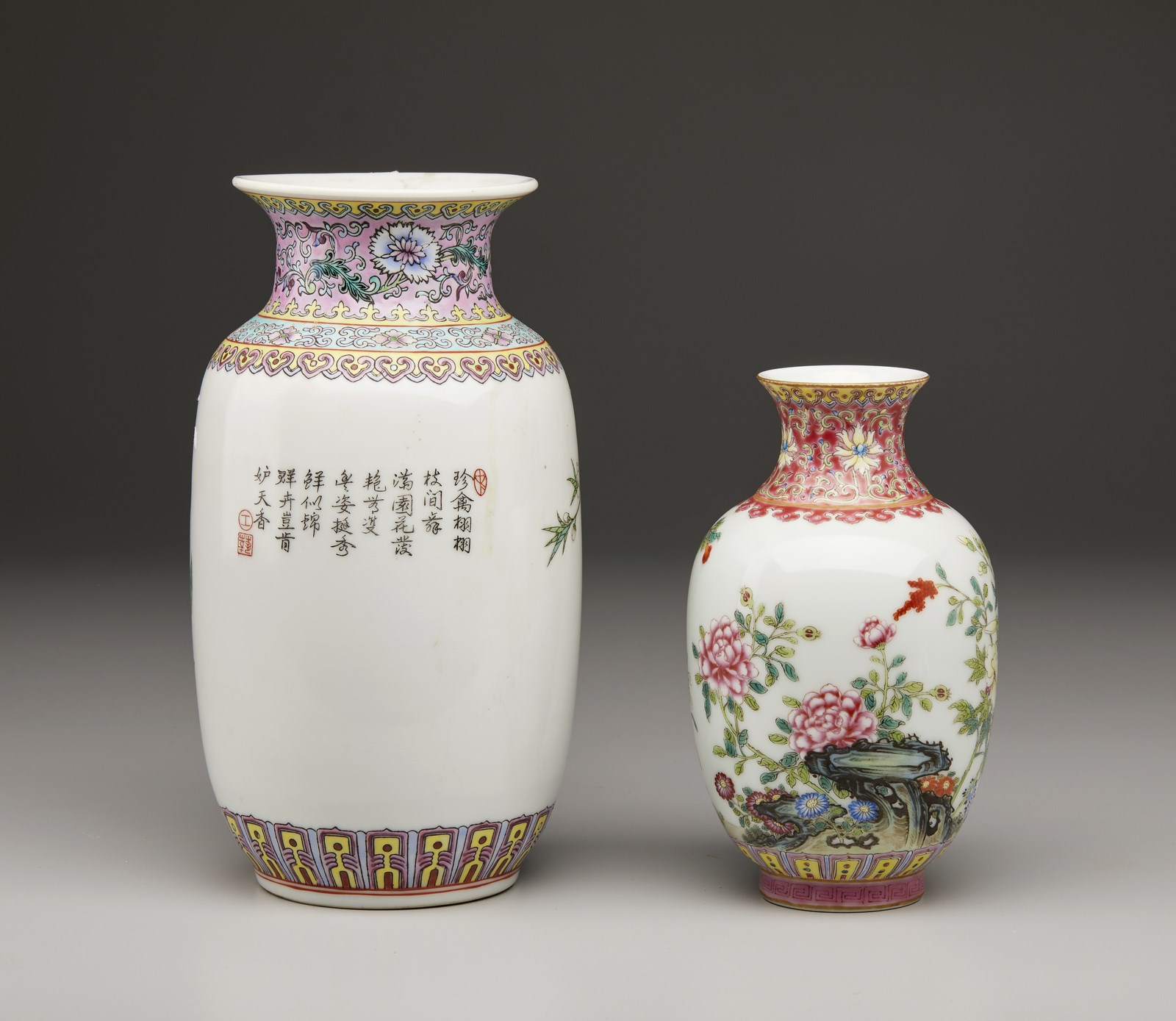 Due vasi in porcellana famiglia rosa Cina, XX secolo