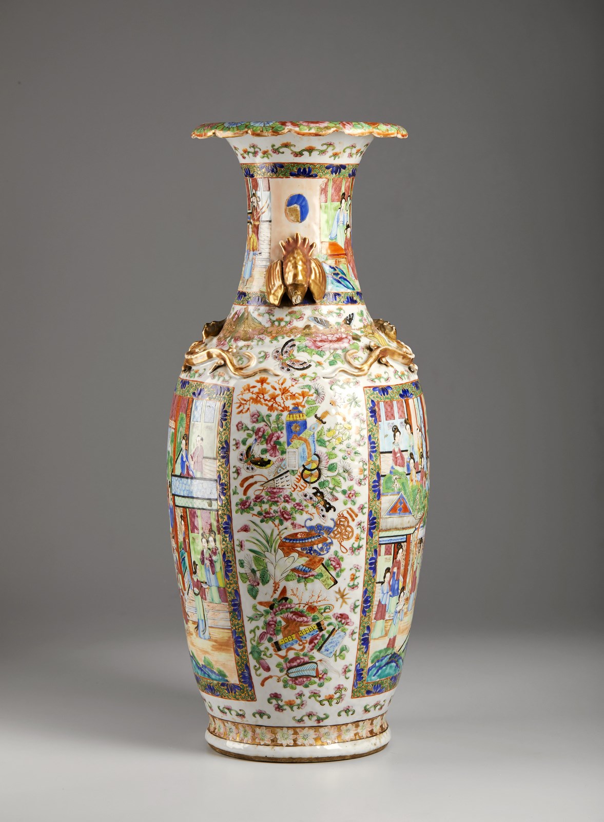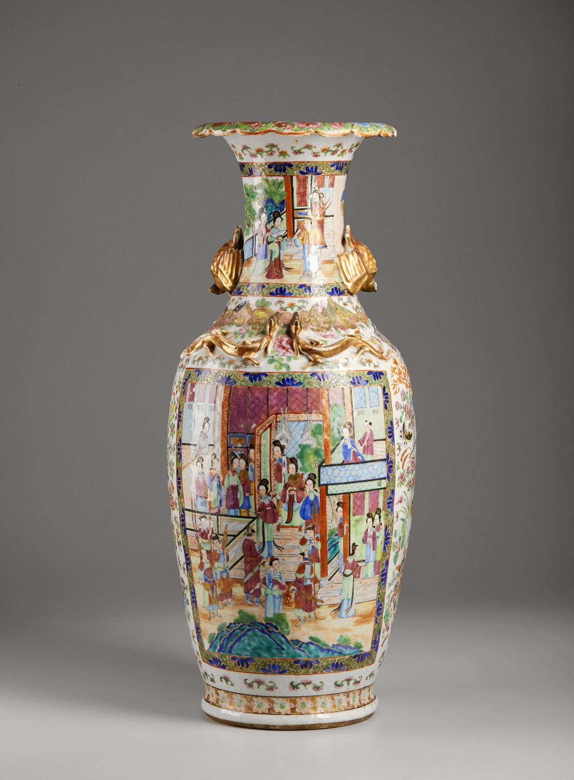 Grande vaso in porcellana Canton Cina, dinastia Qing, XIX secolo