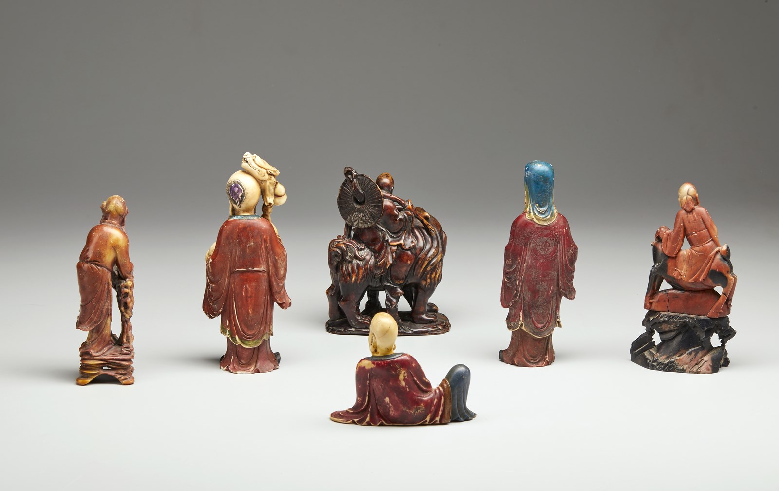 Gruppo di sei intagli in pietra saponaria Cina, dinastia Qing, XIX secolo