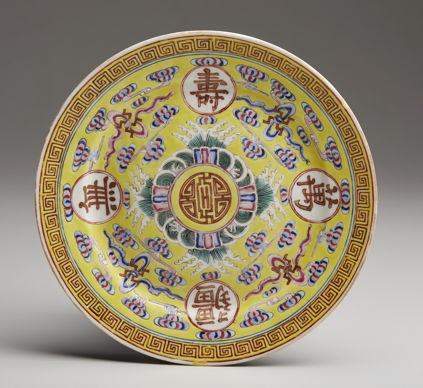 Lotto composto da giara e piattino a fondo giallo Cina, XX secolo