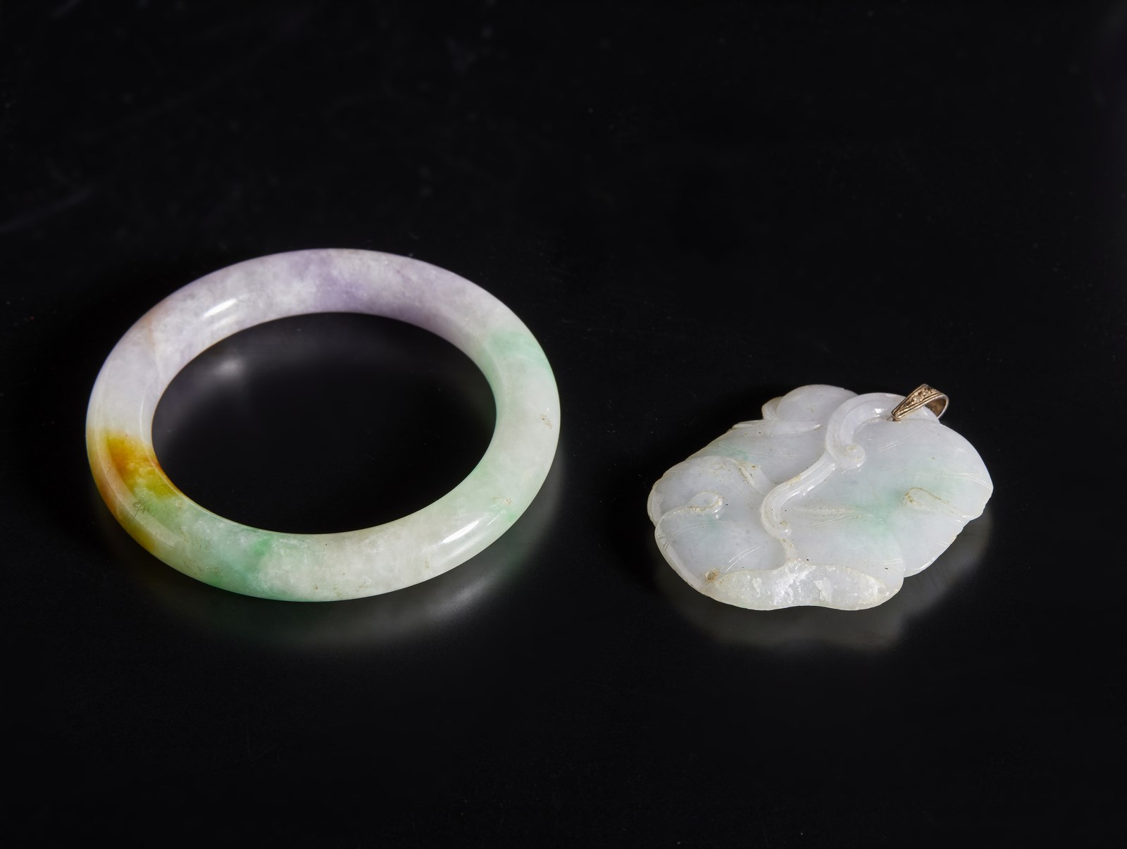 Include: un vasetto globulare craquelè (h.6,5 cm),un vasetto cilindrico framboise (h. 10,5) un piattino celadon craquelè (diam. 12,5 cm) 4 snuff bottles (2 vetro e 2 porcellana) h. 7 cm la più grandeuna tazza in smalto su metallo (diam. 11 cm) un intaglio in giada apple green (h. 6 cm) un intaglio in giada celadon (h. 6 cm) 1 bracciale in giada verde e lavanda (diam. 8 cm)